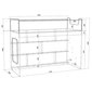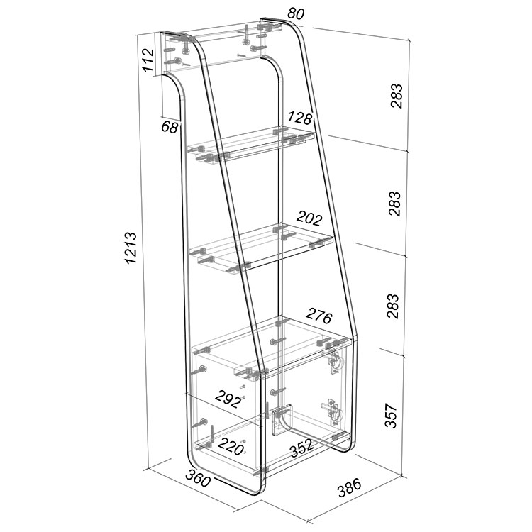- Стеллаж состоит из трех полок, 2 из которых разделенны на две секции – удобно для поддержания порядка и сортировки предметов.
