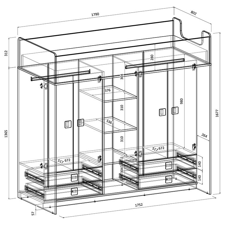 - Вместительные шкафы для хранения одежды, белья,игрушек или иных вещей с выдвижными ящиками - отличное решение для двоих детей!