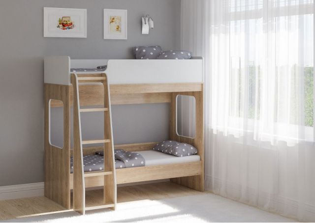 - Классическая детская двухъярусная кровать с двумя параллельными спальными местами на выбор: 1750х750, 1900х750, 1750х800, 1750х850, 1900х800 или 1900х850.
