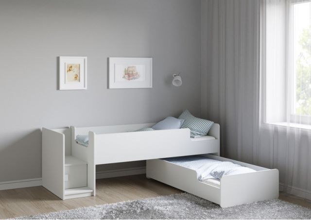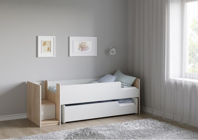 В комплекте: выдвижной ящик, бортик. Спальное место: 80х140 см. Материал: МДФ.
