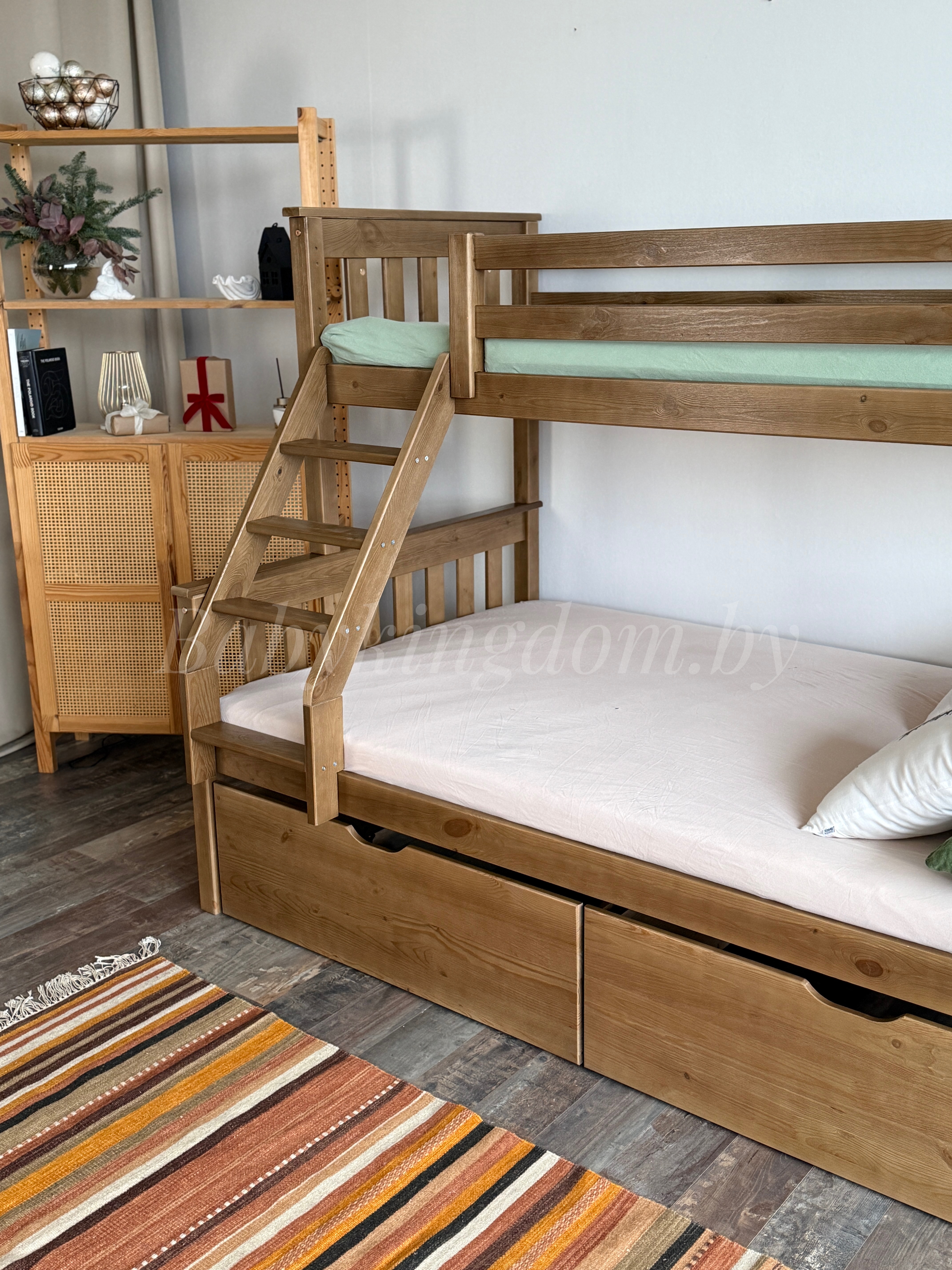 Двухъярусная кровать «Мальм-люкс» из массива сосны (антик, с ящиками)