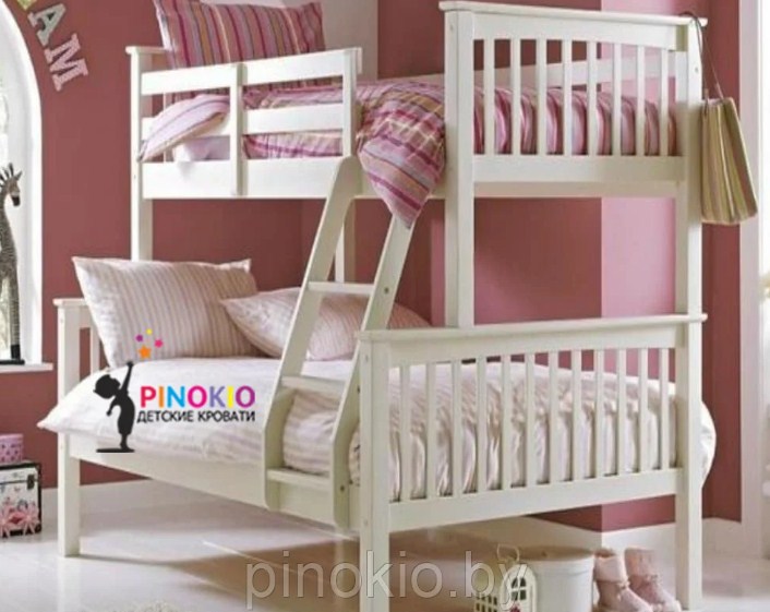 - Кровать изготовлена из 100% древесины первого сорта и оснащена защитными ограждениями и вертикальной лестницей.