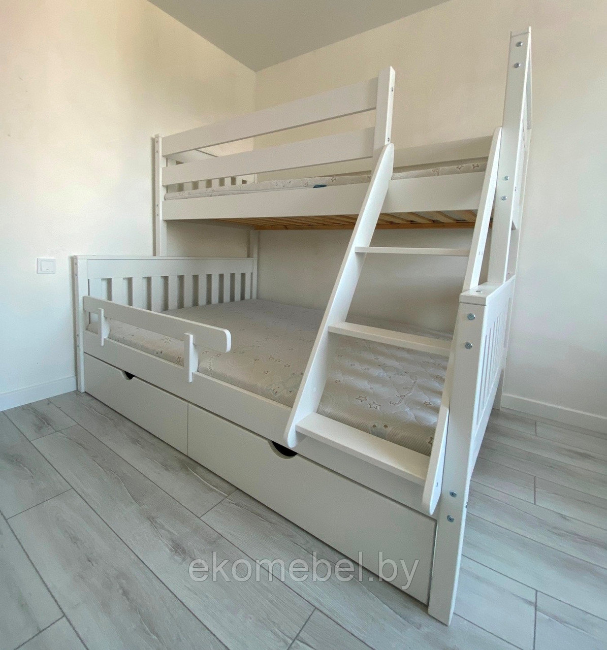 Двухъярусная кровать «Малм-Люкс» с ящиками и бортиком (90х200/140х200 см) Массив сосны