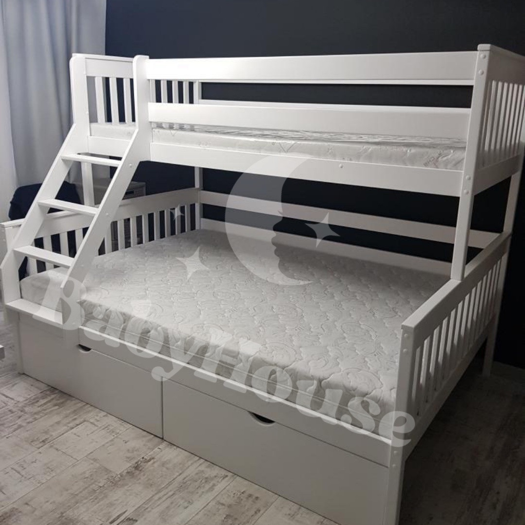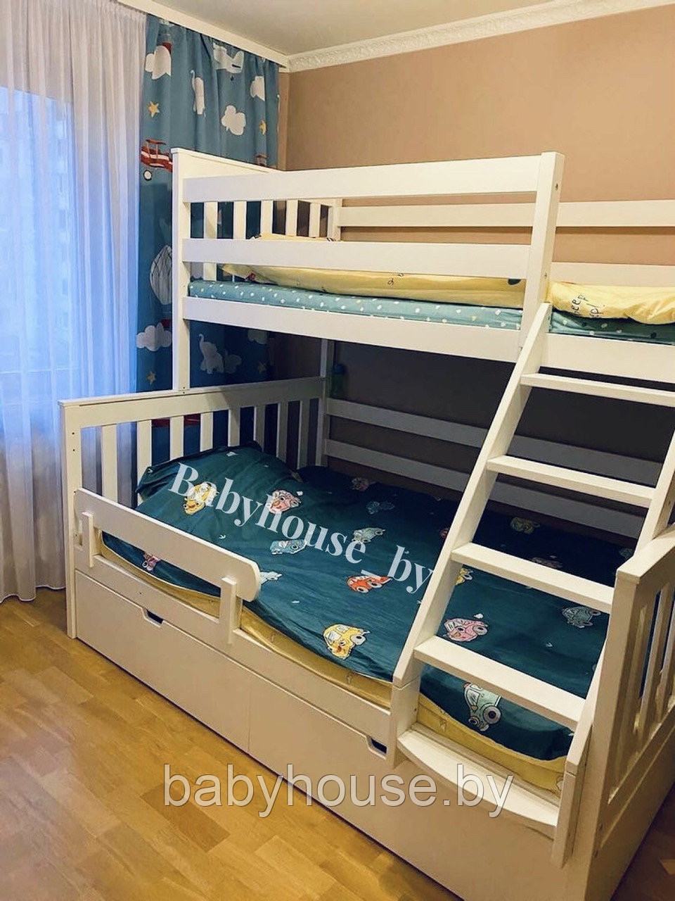 Двухъярусная кровать «Эрик» с ящиками и бортиком (90х200 см) Массив сосны