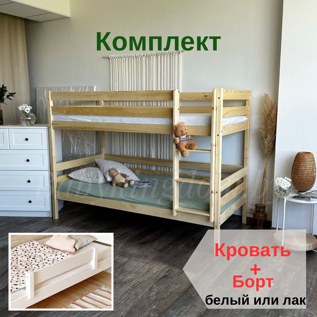Двухъярусная кровать «Моритц» 90х200 (без ящиков) (лак) + борт