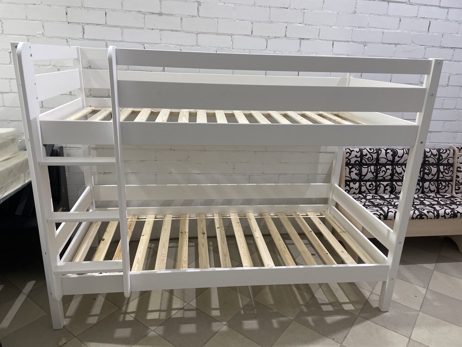 Детская односпальная кровать из натурального дерева. Цвет: белый.