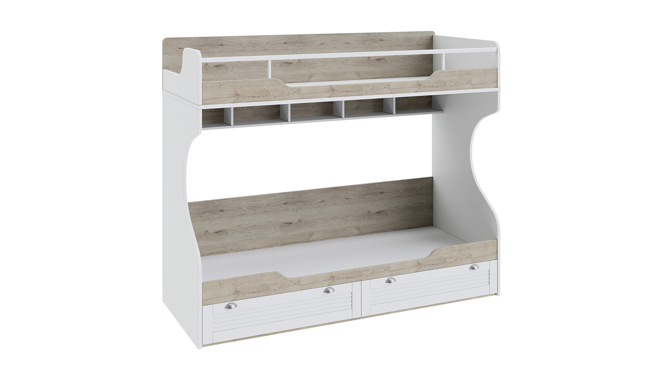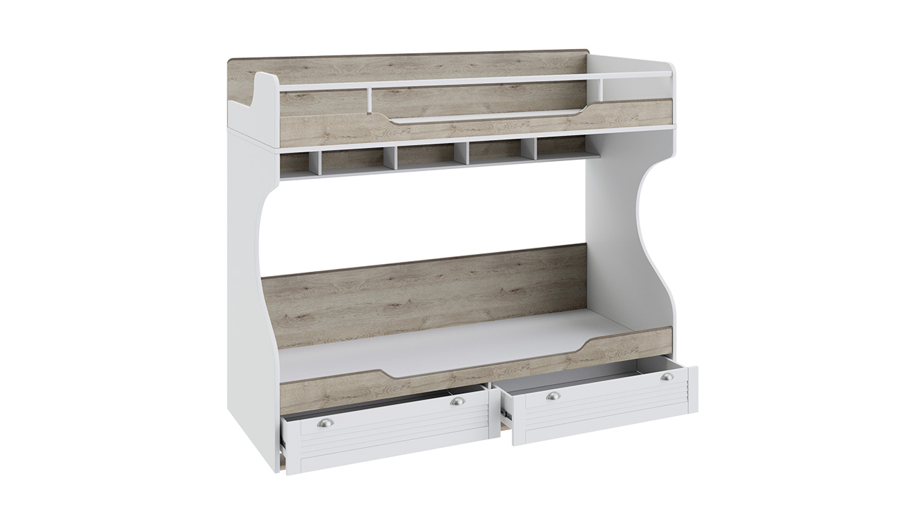 Двухъярусная кровать из массива сосны «Вуди-4» с ящиками, натуральный цвет (лак)