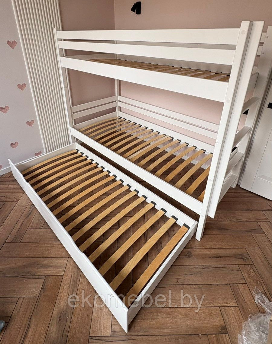Двухъярусная кровать с дополнительным спальным местом — это отличный выбор для семей с несколькими детьми или для гостей. Она сочетает в себе функциональность, стиль и комфорт, позволяя максимально эффективно использовать пространство.