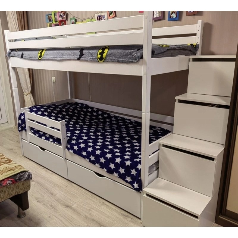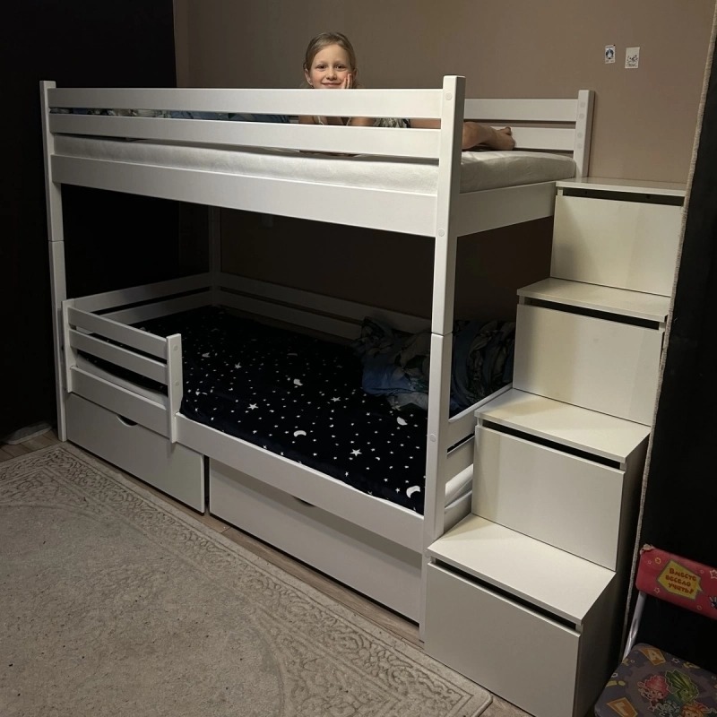 Двухъярусная кровать «Rostik» с лестницей в виде ящиков 200х90см. (белая)