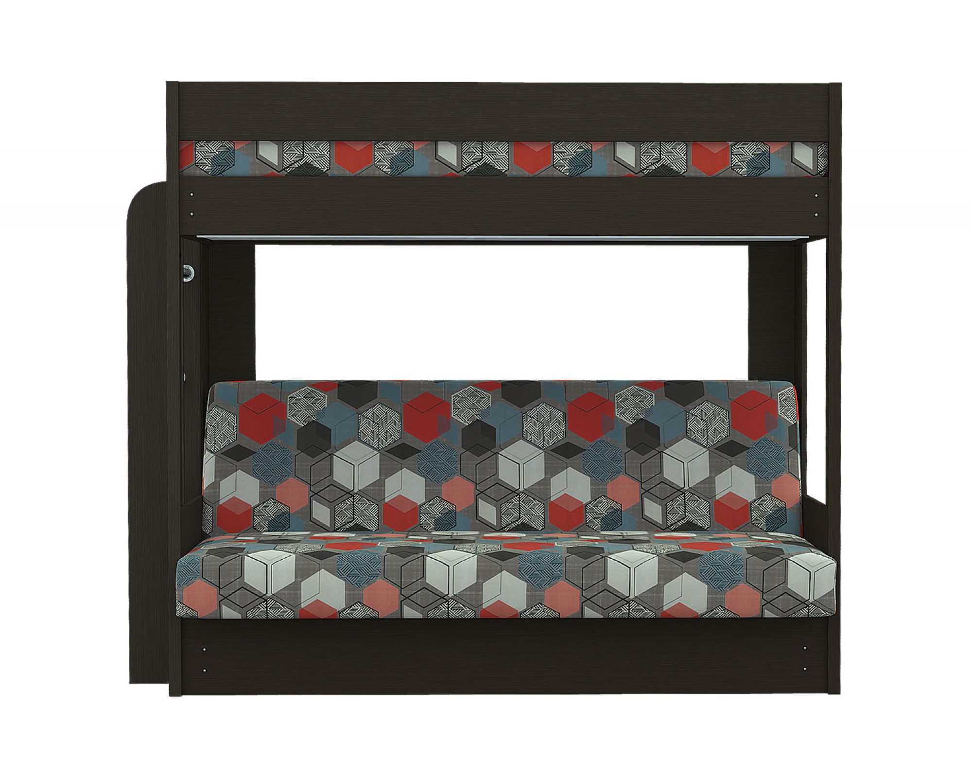 Двухъярусная кровать с диваном GEOMETRY Элегия — это лучшее решение для экономии пространства жилого помещения, где в одной конструкции объединены диван-кровать и кровать. Модель может быть изготовлена из различных вариантов цветов каркаса и обивки, удобная лестница и аккуратная, практичная, функциональная конструкция делают из этой мебели такой элемент, который может быть установлен практически где угодно.