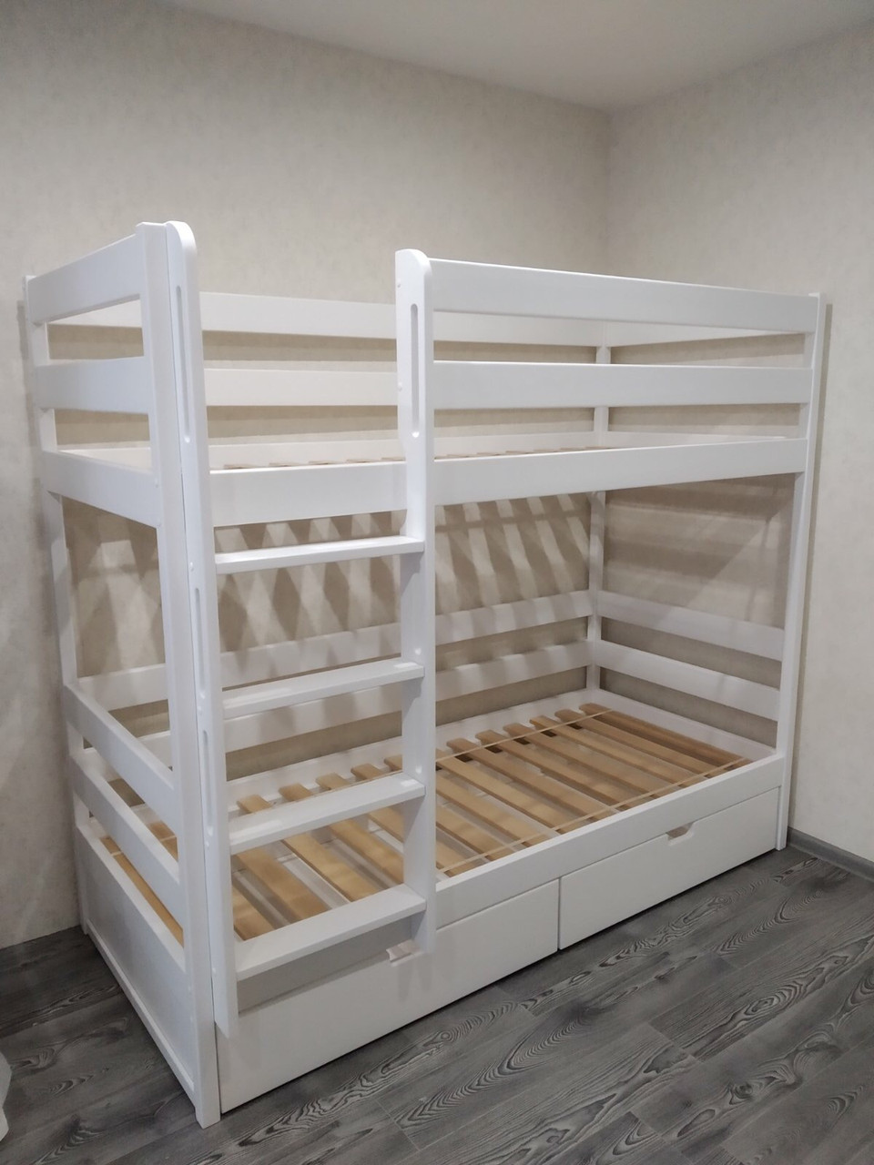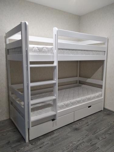 Данная кровать оборудована лестницей для поднятия и спуска.