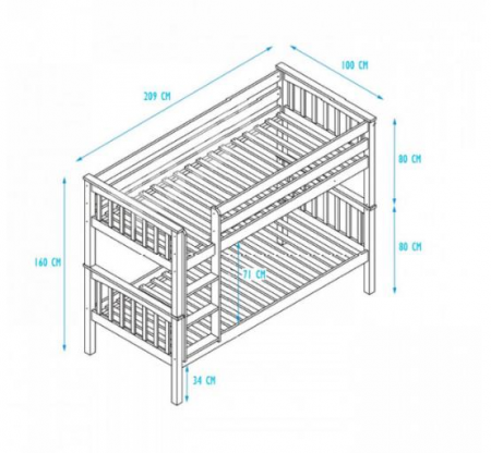 Размер спального места: 80х160, 80х180, 90х200 см. Материал: массив сосны.