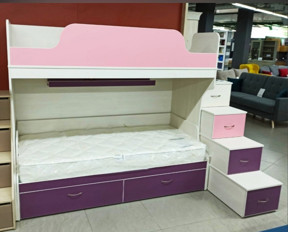 Модель подходит для девочек и мальчиков. Имеется выкатной ящик. Спальное место: 800х1600 мм.