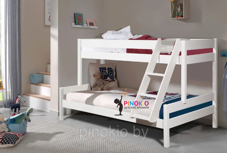 - Кровать изготовлена из 100% древесины первого сорта и оснащена защитными ограждениями и вертикальной лестницей.