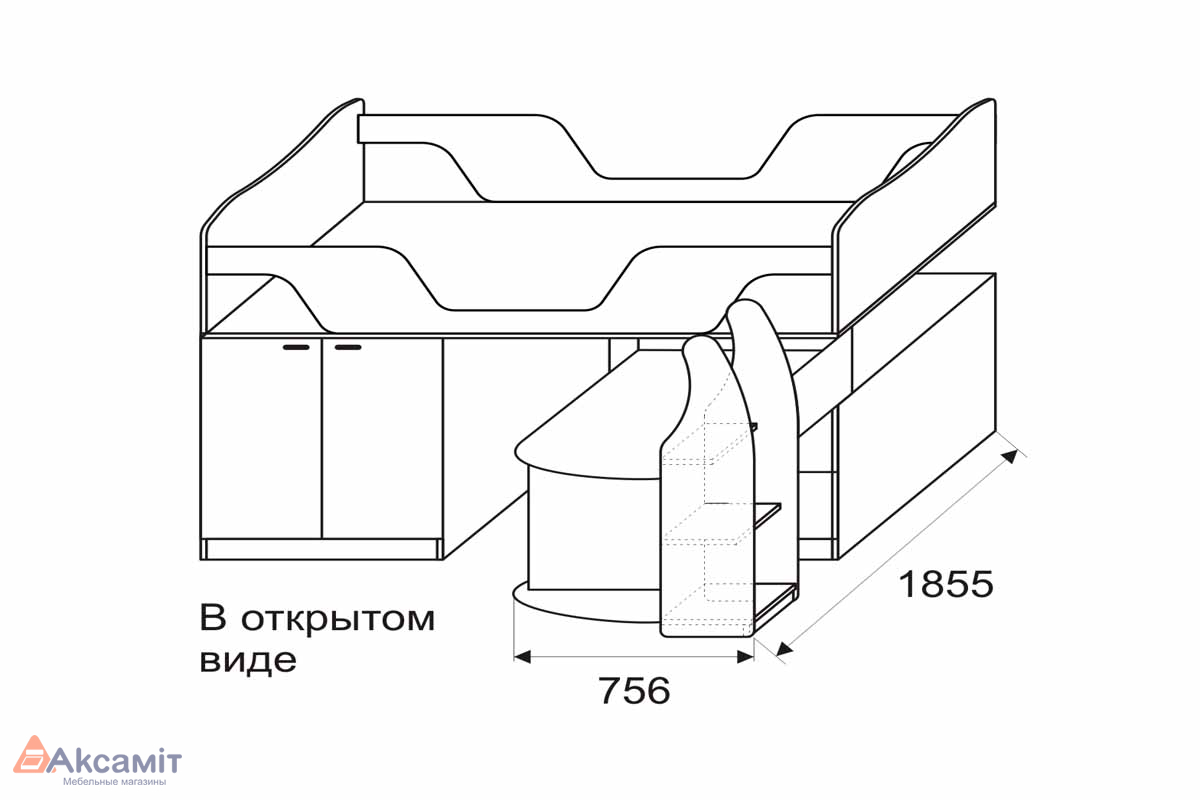 Двухъярусная кровать «ROSTIK» с лестницей-комодом (без борта, без ящиков)