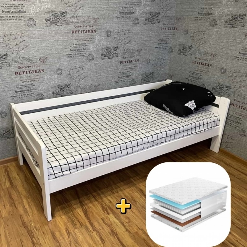 Комплект Кровать Ecodrev «Классик» без бортика и ящиков (белая) и матрас ТОП-4 MINI