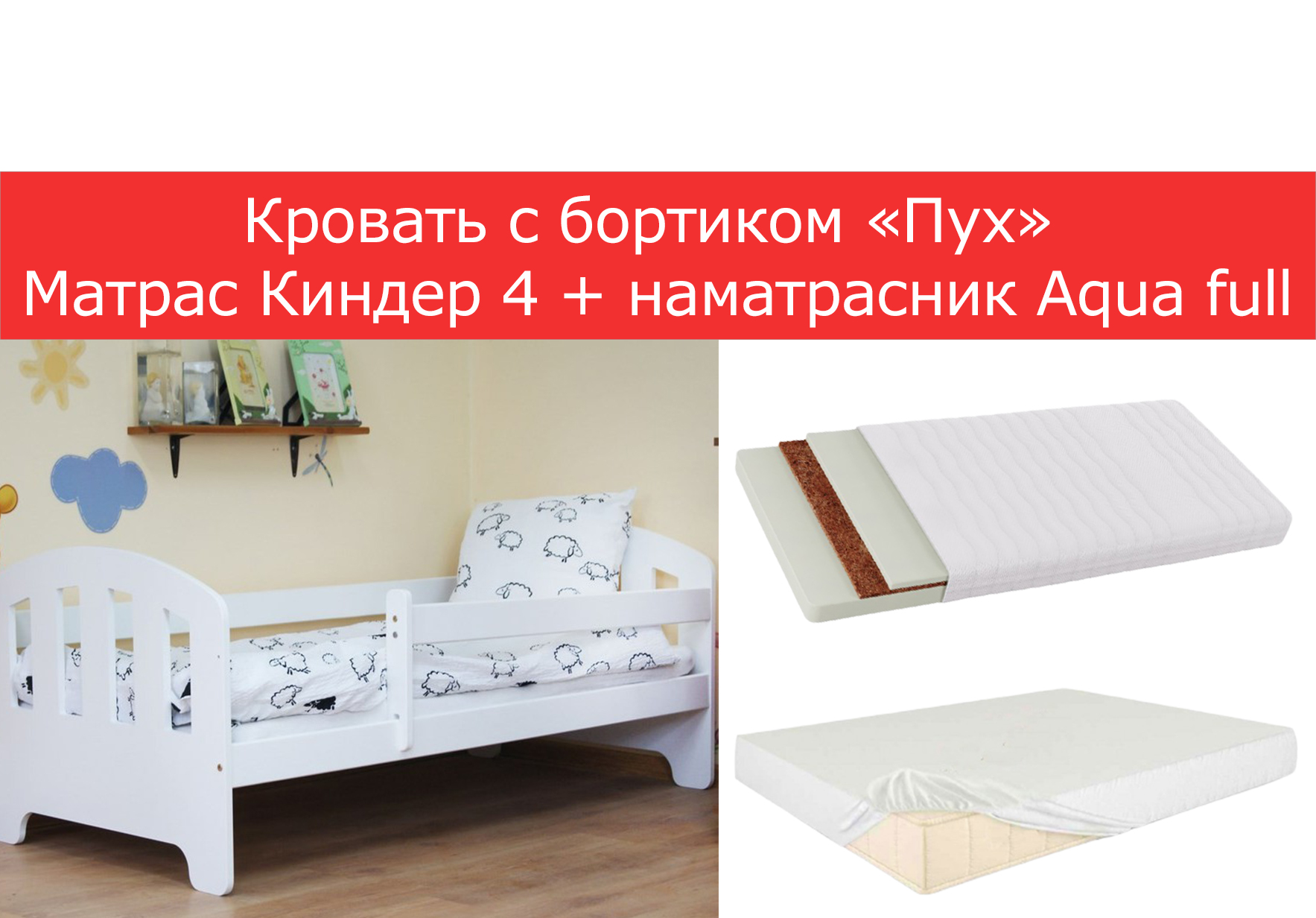 Кровать «Пух» сочетает в себе светлый классический дизайн и удобное спальное место, которое способно обеспечить спокойный и здоровый сон ребенку. Для предотвращения падения кроватка оснащена защитным бортиком.