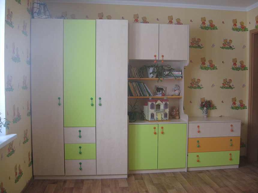 Комплект мебели для детской выполнен из качественных и безопасных материалов с использованием современной фурнитуры. В составе гарнитура имеется удобная двухъярусная кровать, укомплектованная удобной лестницей с открывающимися нишами. Также в составе набора имеются выдвижные ящики для хранения постельных принадлежностей, что делает модель еще более удобной и функциональной.