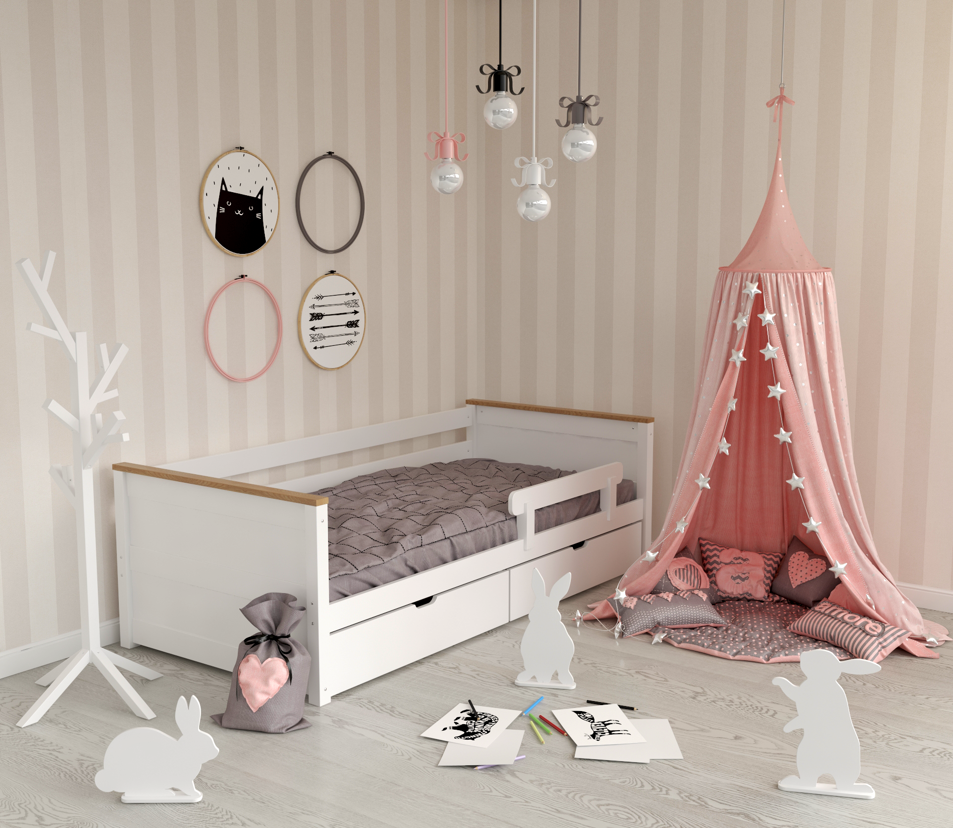 Спальное место: 160х80 см. Защитные бортики. Натуральные материалы.