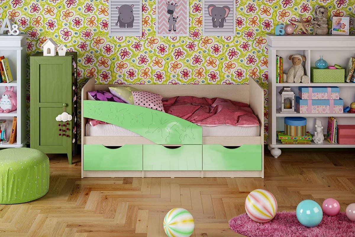 Кровать «Бабочки» 1,6*0,8 (дуб крафт белый - салатовый)