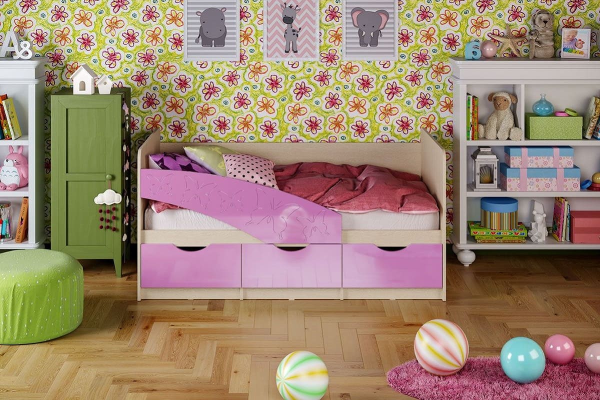 Кровать «Бабочки» 1,6*0,8 (дуб крафт белый - сиреневый)