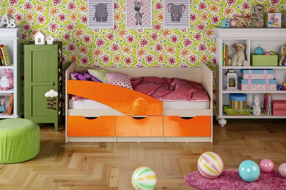 Кровать «Бабочки» 1,8*0,8 (дуб крафт белый - оранжевый)
