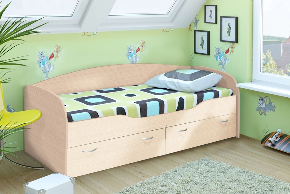 код 82707Удобная детская кровать с тремя фигурными щитками. Оборудованы ящики для хранения.