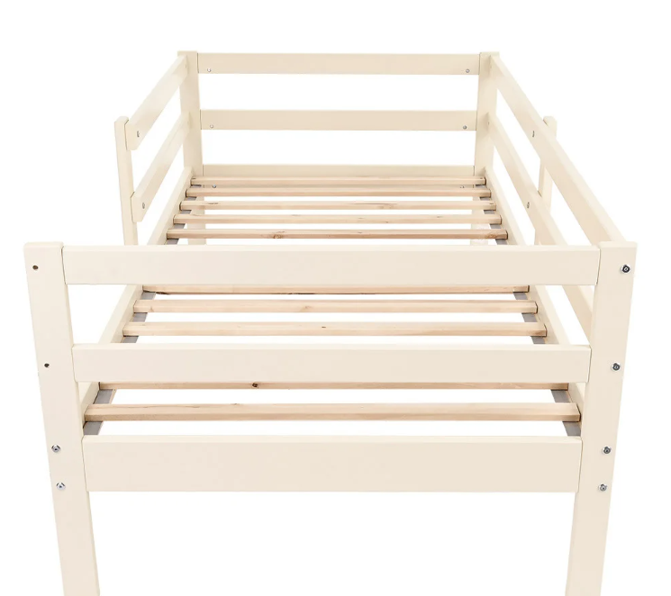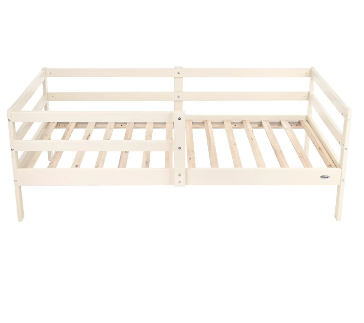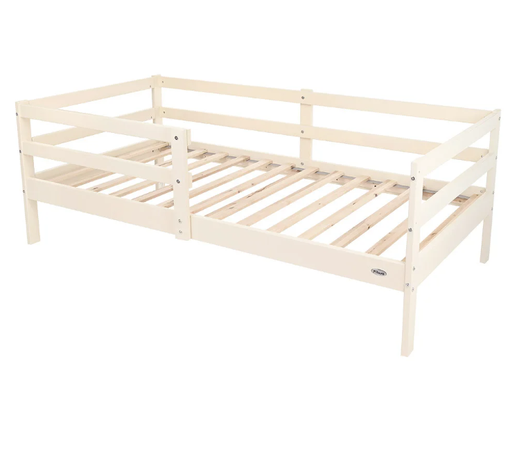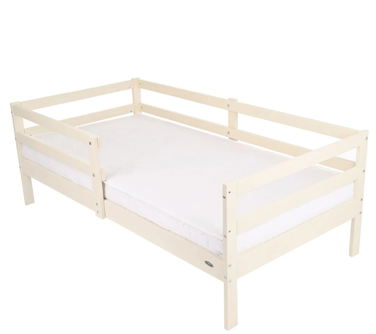 - Съемные защитные бортики (в комплекте) с двух сторон уберегут ребенка от падения с кровати во время сна, которые можно установить как слева, так и справа или вообще без них