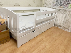Кровать Ecodrev «Классик» со стационарный бортиком лесенкой и ящиками (белая)