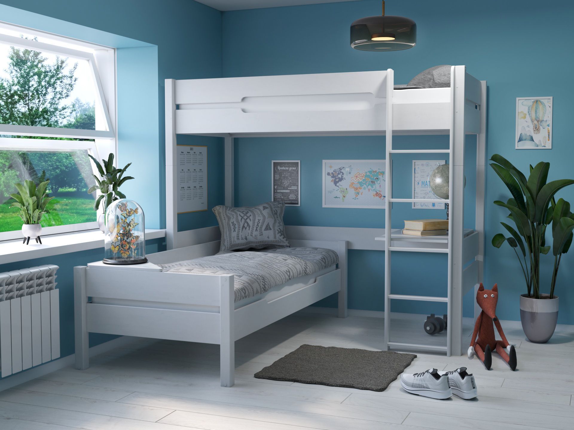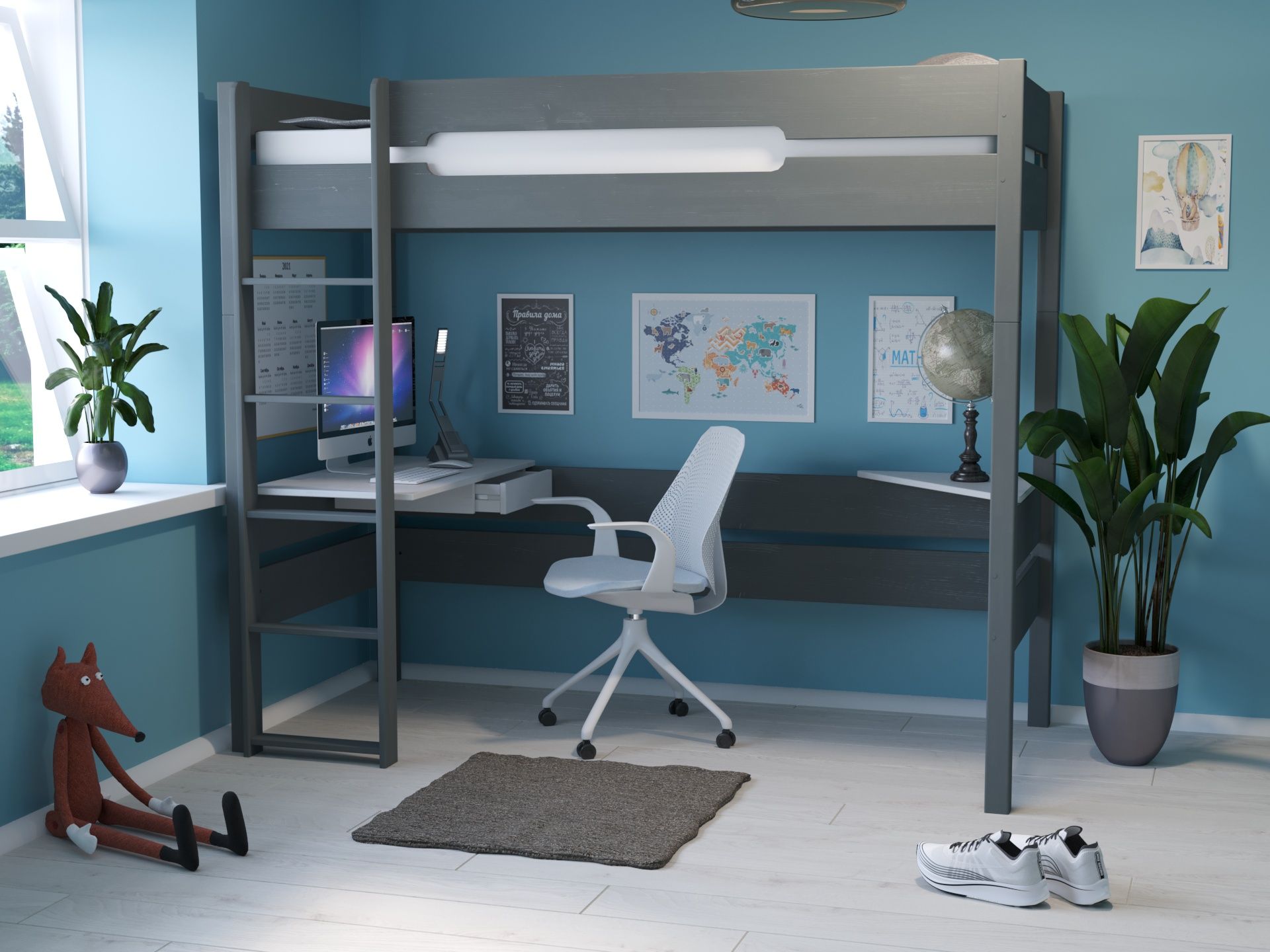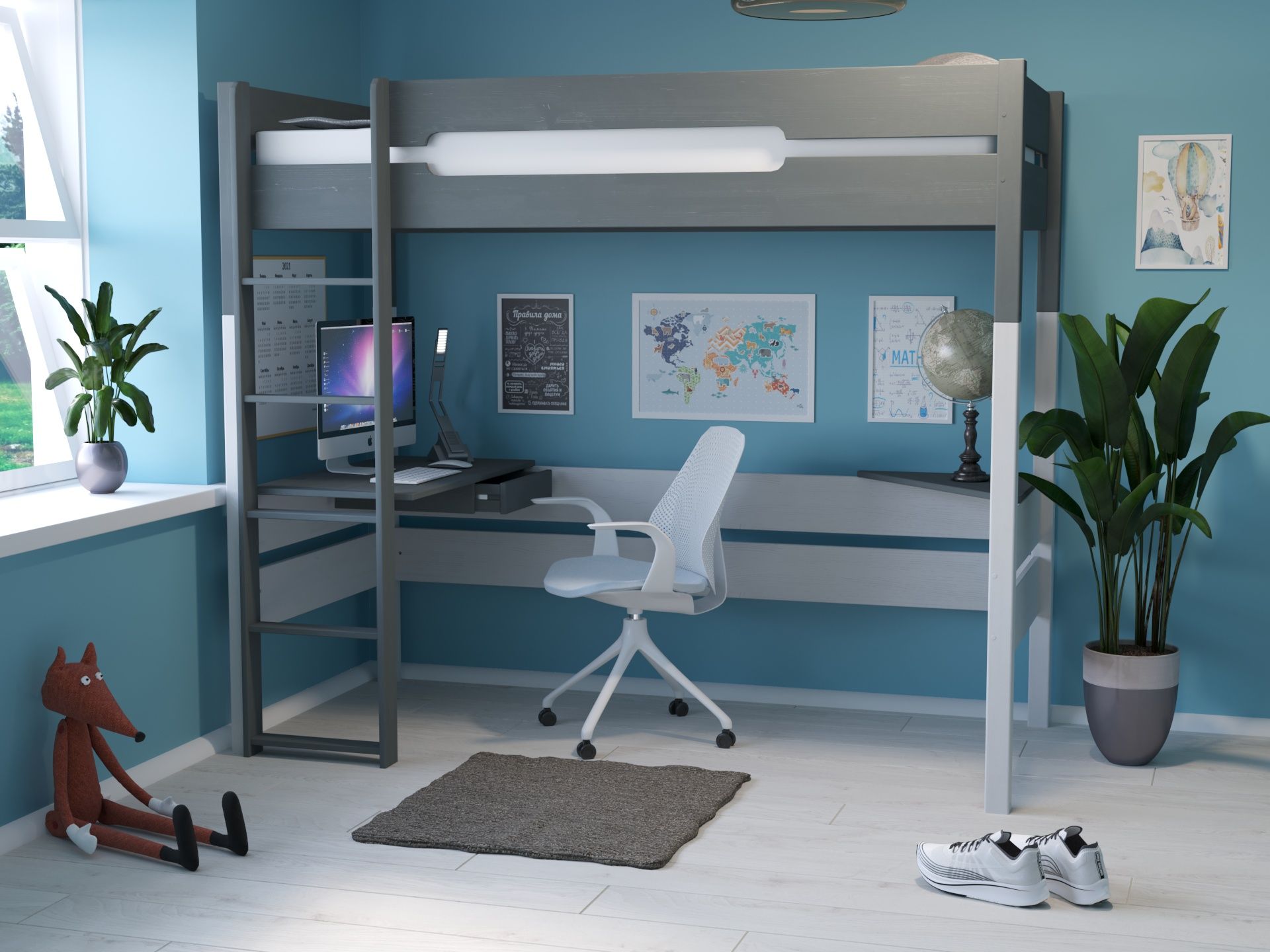 Кровать-чердак «Амелия» — это удобное и практичное решение для небольших помещений. Она может быть дополнена письменным столом, что позволит эффективно организовать пространство для сна и работы или учёбы.