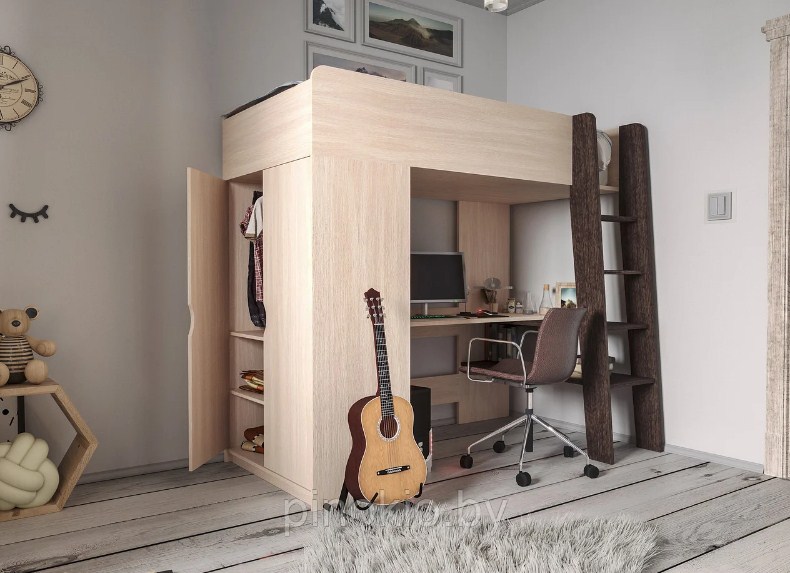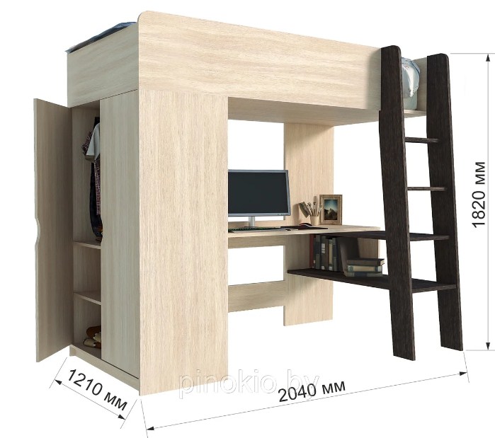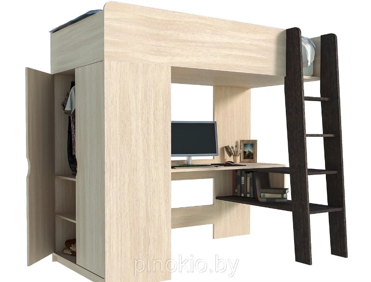 код 104158Удобная и функциональная кровать с рабочим местом и шкафчиком. Прочная и надежная конструкция.