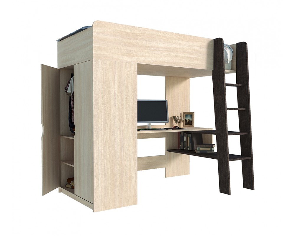 Кровать-чердак «Анеси-1» Дуб молочный/Дуб венге