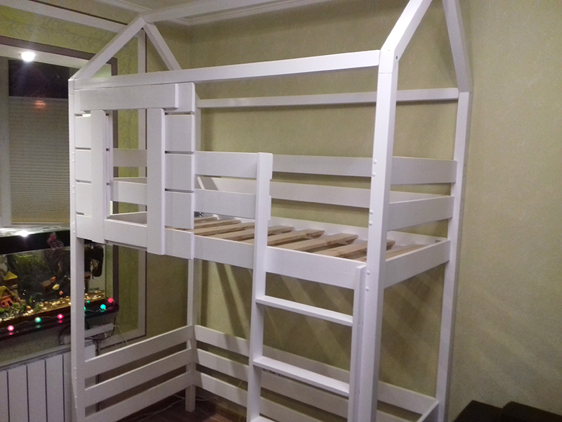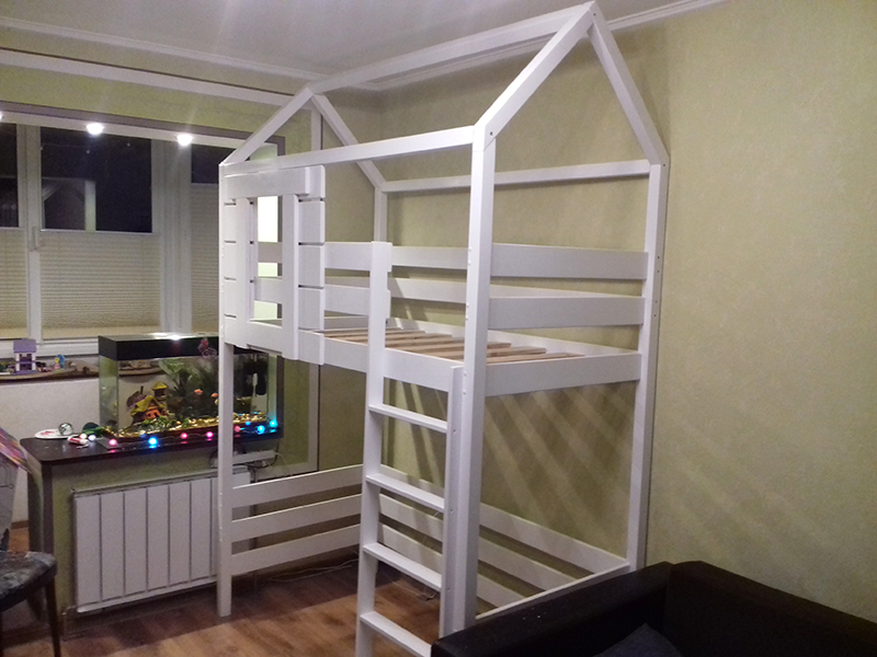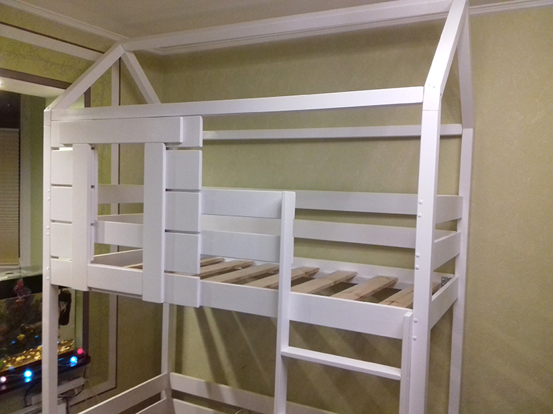 Кровать-домик «Альф со съемной крышей» с ящиками (лак)