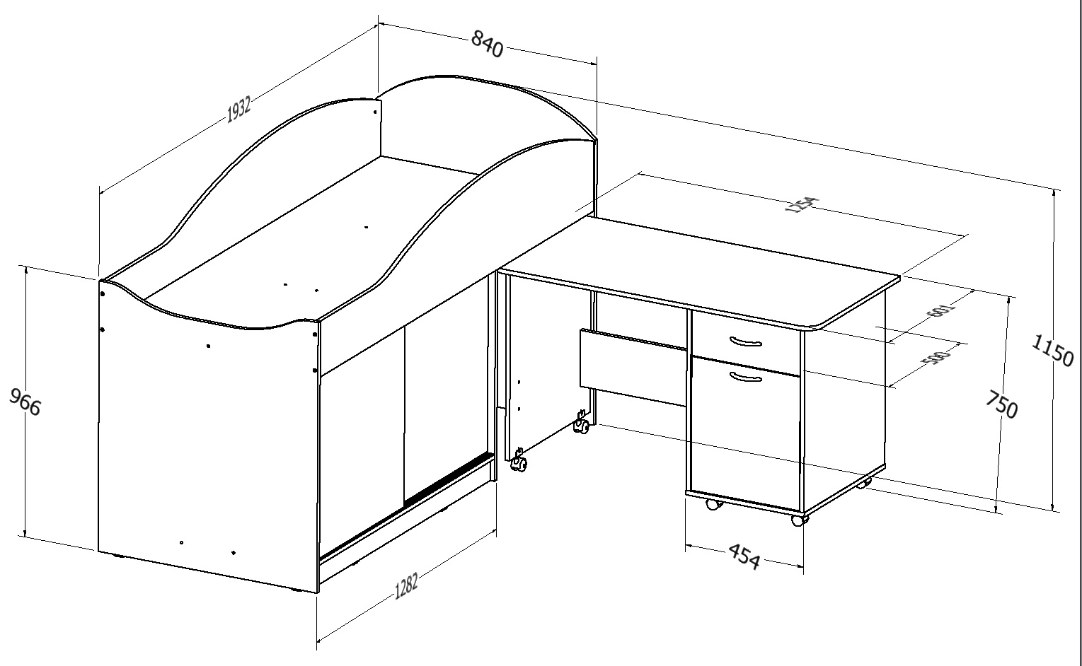 Спальное место на выбор. 2 выдвижных ящика для хранения.