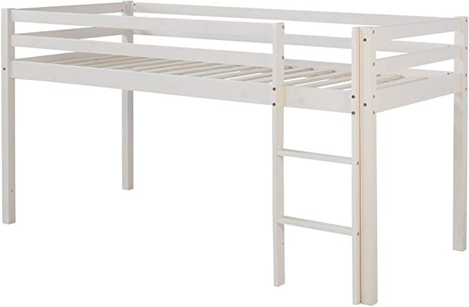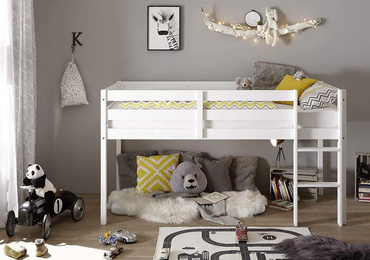 Кровать-чердак «Кени» белая из массива сосны