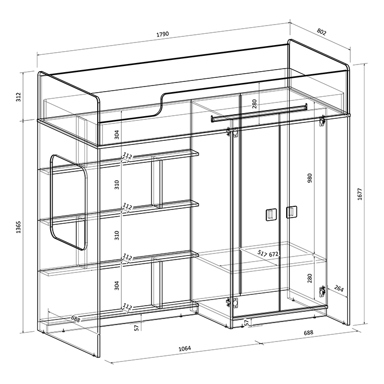 - Вместительный шкаф для хранения одежды, белья,игрушек или иных вещей.
