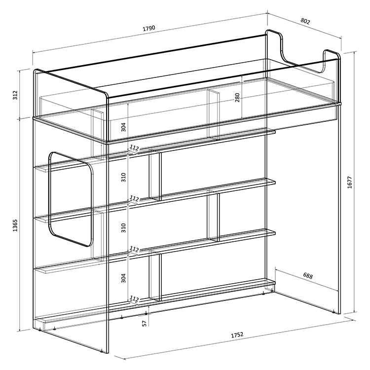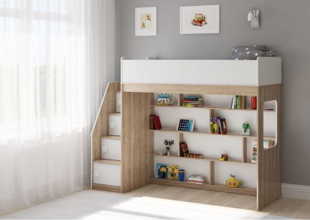 код 141678Габаритные размеры: 2246x802x1677 мм. Под спальным местом располагается игровая зона.