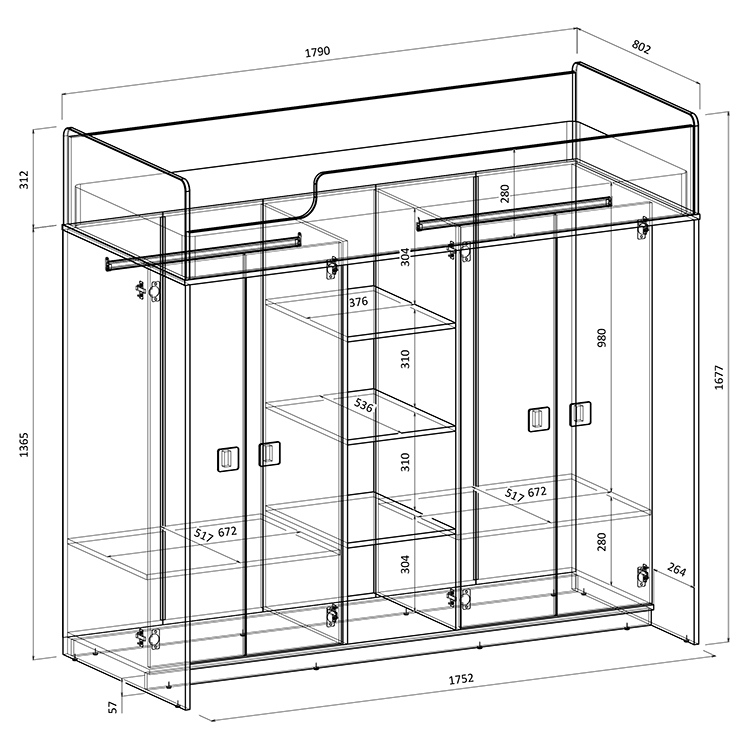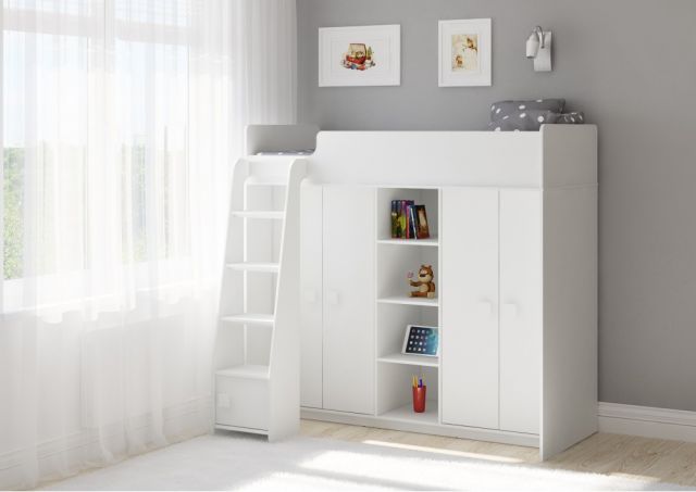 - Под спальным местом располагаются два вместительных шкафа и стеллаж между ними для хранения одежды, белья,игрушек или иных вещей.
