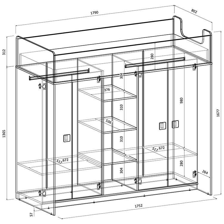 код 141692Габаритные размеры: 2246x802x1677 мм. Два вместительных шкафа и стеллаж между ними.