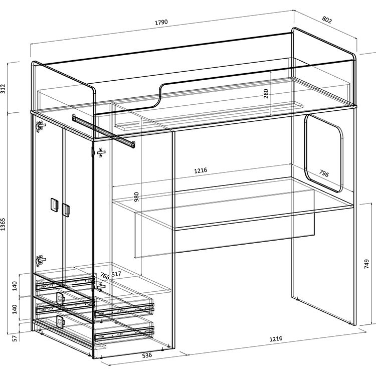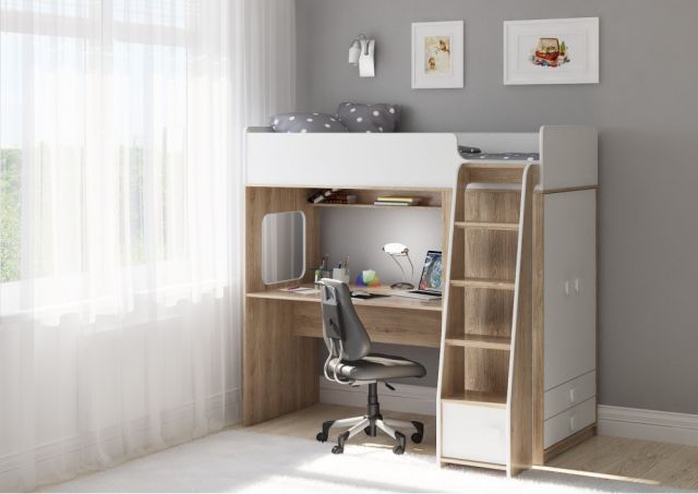 - Учебная зона со столом под спальным местом открывает возможности для письменных работ,а также здесь удобно расположить ноутбук.