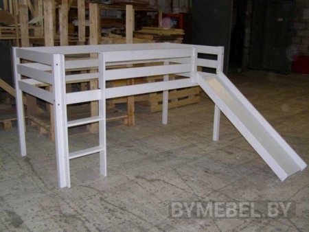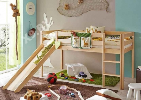 Кровать-чердак «Лео» оснащен горкой, что привнесет элемент игры в жизнь ребенка. Натуральный массив сосны не вызовет аллергии и обеспечит крепкий и надежный сон вашего малыша.