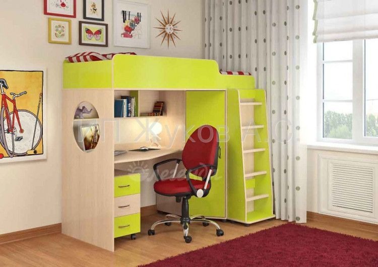 Кровать-чердак «Малыш 06» (лайм)