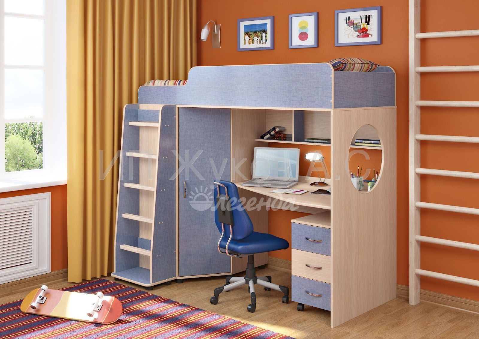 В комплект кровати чердака Малыш 06 входит: комфортное спальное место 186/80, стол для занятий, удобные полки и вместительный шкаф!