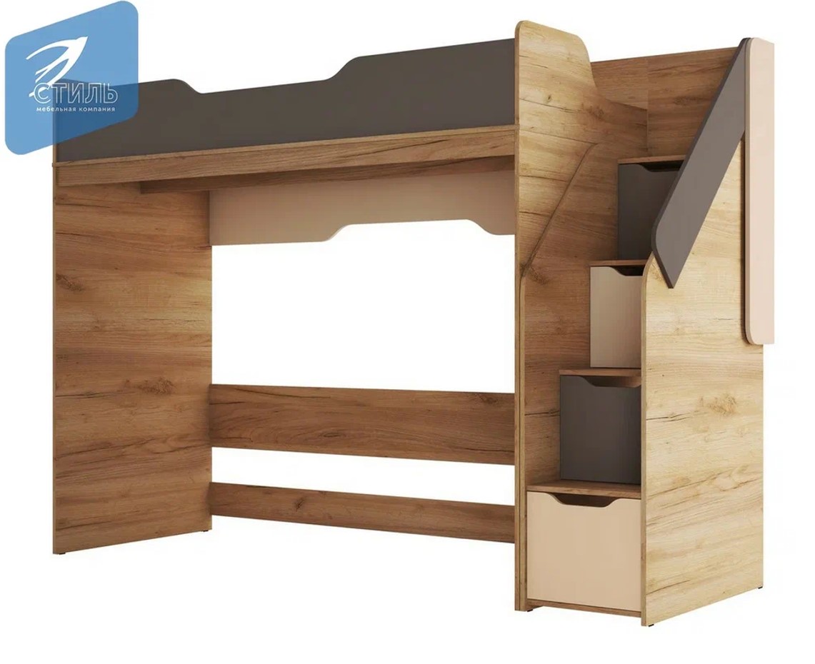 Кровать-чердак МК Стиль RICH КР-001 дуб Крафт золотой/миндаль / глиняный серый