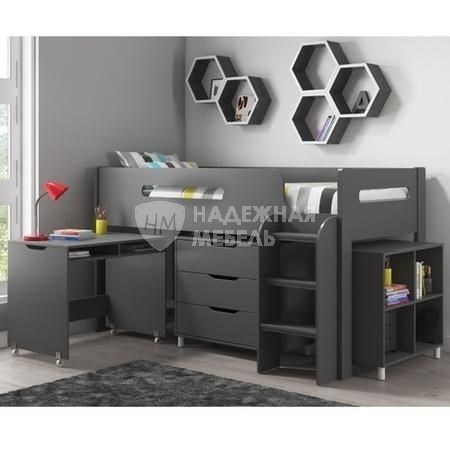 Кровать-чердак с письменным столом серая