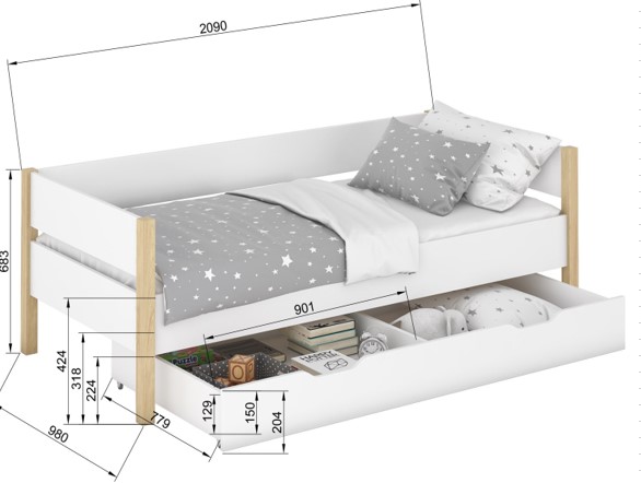 Удобное спальное место. Два ящика для хранения белья или игрушек.