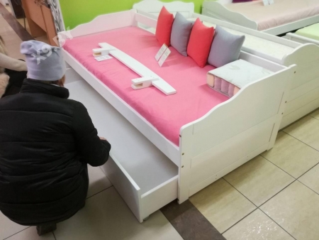 Два выдвижных ящика под кроватью.