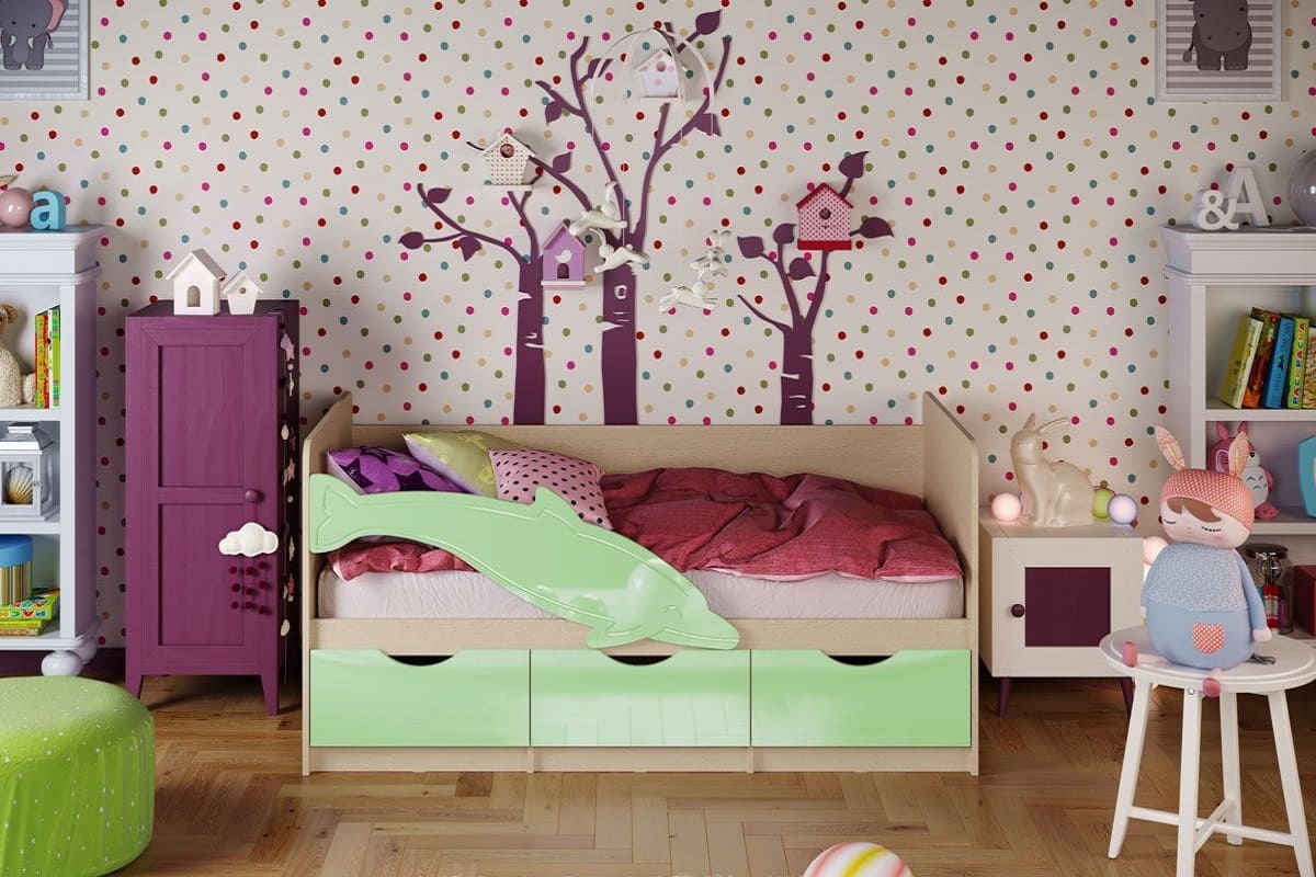 Кровать «Дельфин-1» 1,8*0,8 (дуб крафт белый - салатовый)