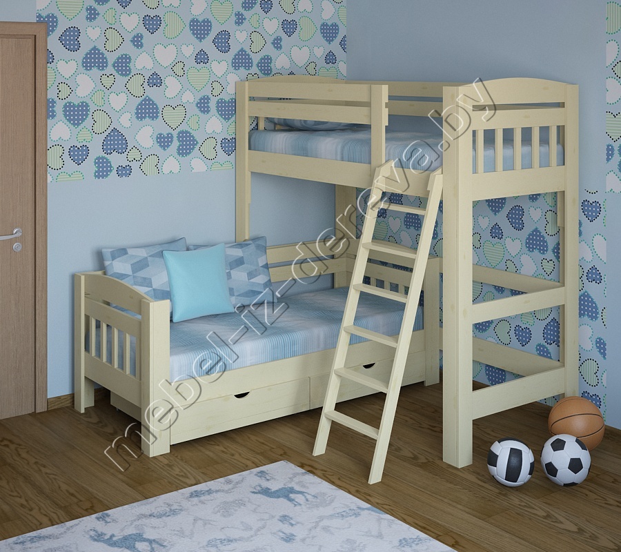 Спальное место: 80х160, 80х180, 90х190, 90х200 см. Материал: массив сосны.