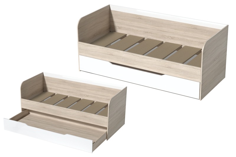 Спальные места: 80х180, 80х200 см. Выдвижные ящики в комплекте. Материал: ЛДСП.